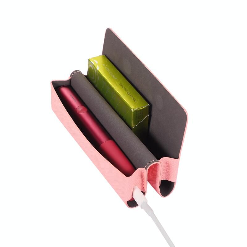 For IQOS ILUMA ONE Cross Pattern E-cigarette Leather Storage Bag(Pink)