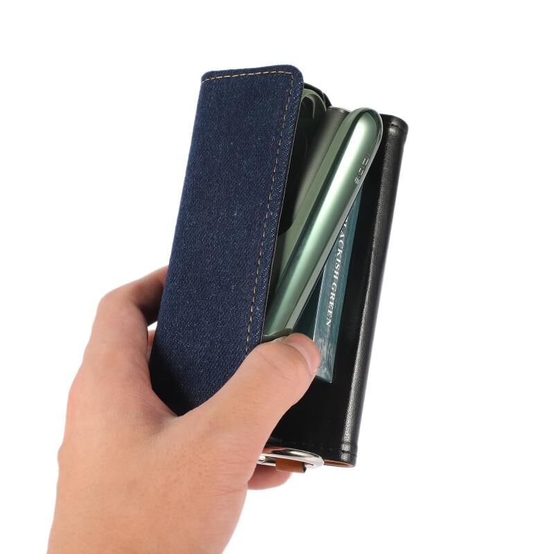 For IQOS ILUMA Portable Contrasting Color Electronic Cigarette Storage Bag with Hanging Loop(Brown + Denim Dark Blue)