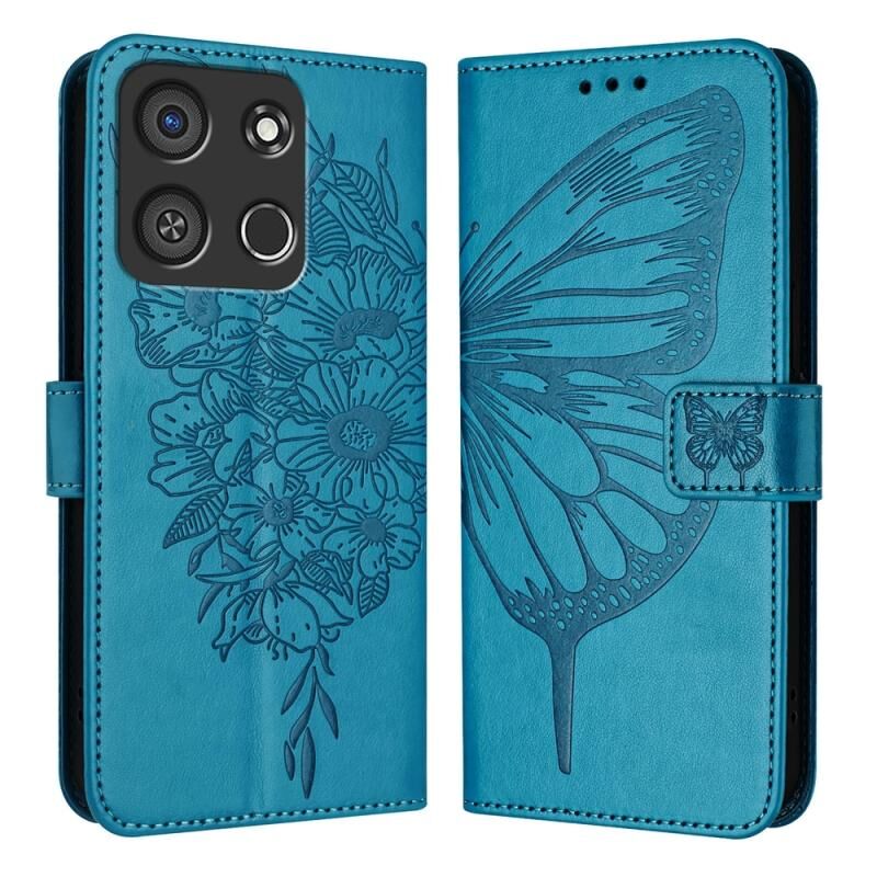 Θήκη τηλεφώνου δερμάτινη με ανάγλυφο σχέδιο πεταλούδας για Itel A05s (Μαύρο)