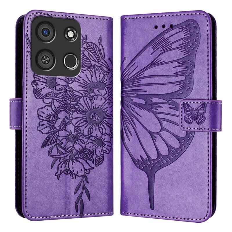 Θήκη τηλεφώνου δερμάτινη με ανάγλυφο σχέδιο πεταλούδας για Itel A05s (Μαύρο)