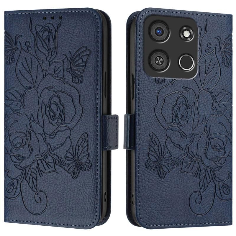 For itel A05s Embossed Rose RFID Anti-theft Leather Phone Case(Dark Blue)