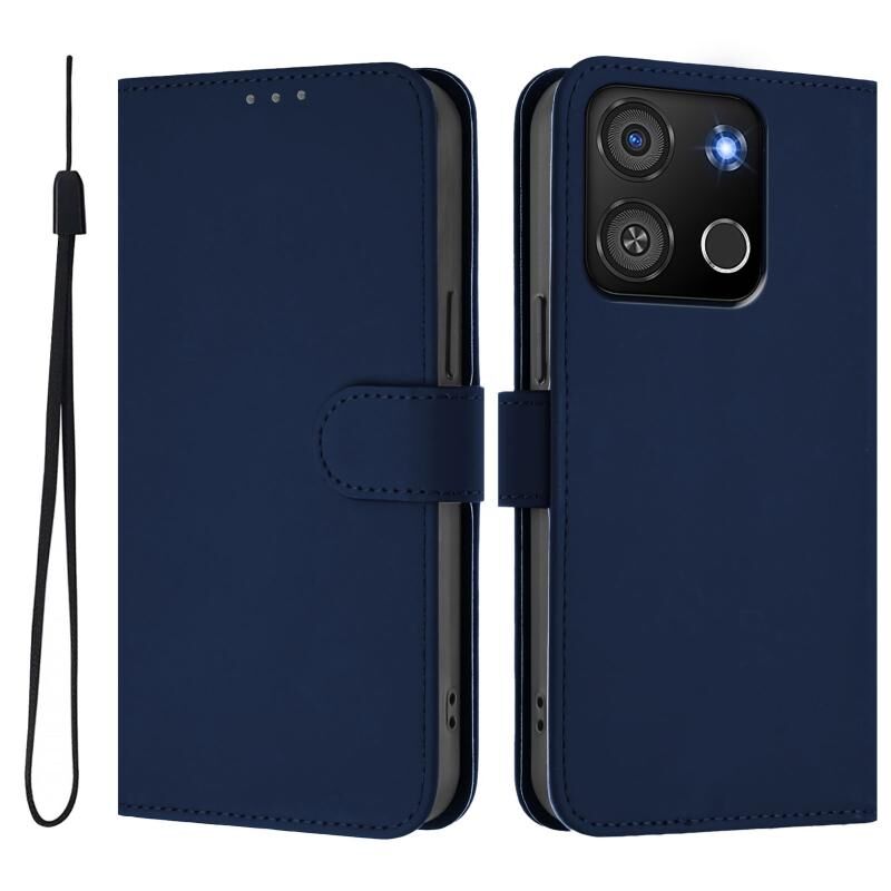 Για το itel A05s Skin Feel Αμιγές χρώμα δερμάτινη θήκη τηλεφώνου με κορδόνι (Ναυτικό μπλε)