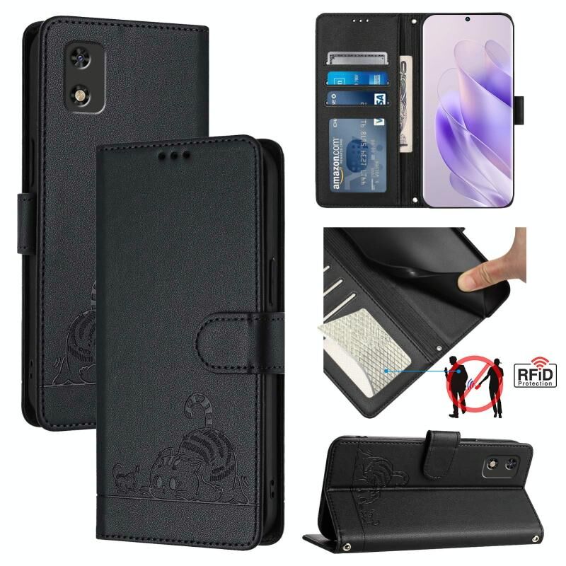 Θήκη τηλεφώνου από δέρμα με ανάγλυφο σχέδιο γάτας και ποντικού για itel A23 Pro / A17 με RFID και λουρί (Μέντας Πράσινο)