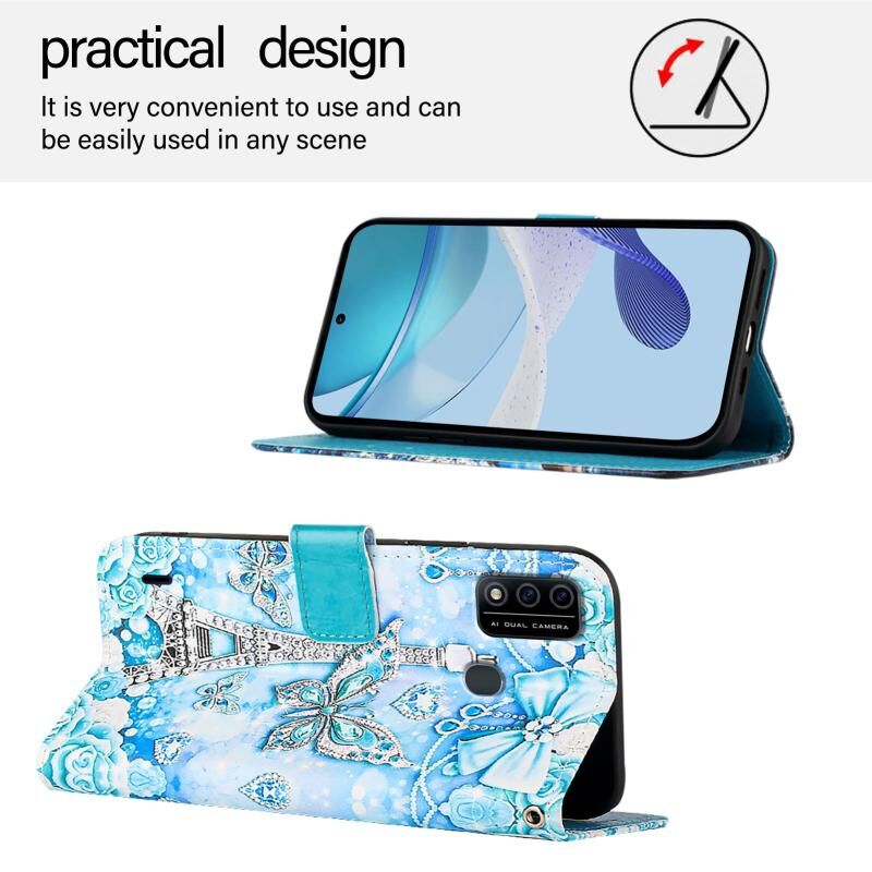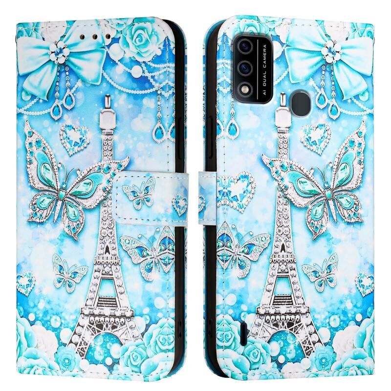 Θήκη τηλεφώνου από δέρμα απλής ύφανσης με έγχρωμο σχέδιο ζωγραφικής για itel A48 (Πύργος Πεταλούδας)