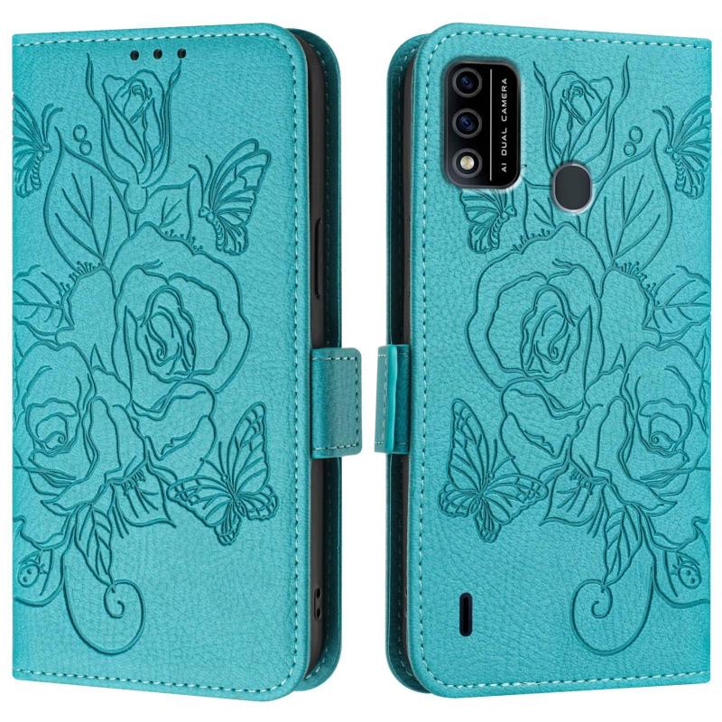 For itel A48 Embossed Rose RFID Anti-theft Leather Phone Case(Light Blue)