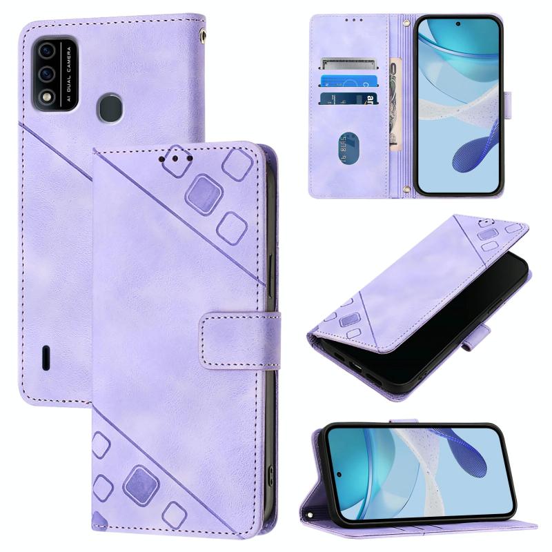 For Itel A48 Skin Feel Embossed Leather Phone Case(Light Purple)
