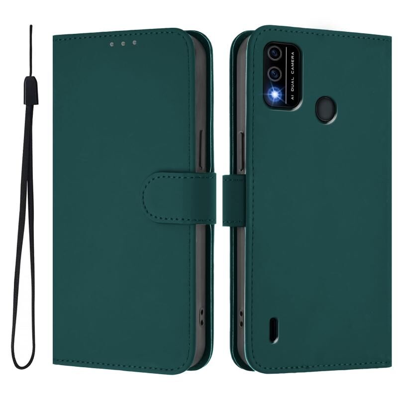 Για το itel A48 Skin Feel Αμιγές χρώμα δερμάτινη θήκη τηλεφώνου με κορδόνι (σκούρο πράσινο)