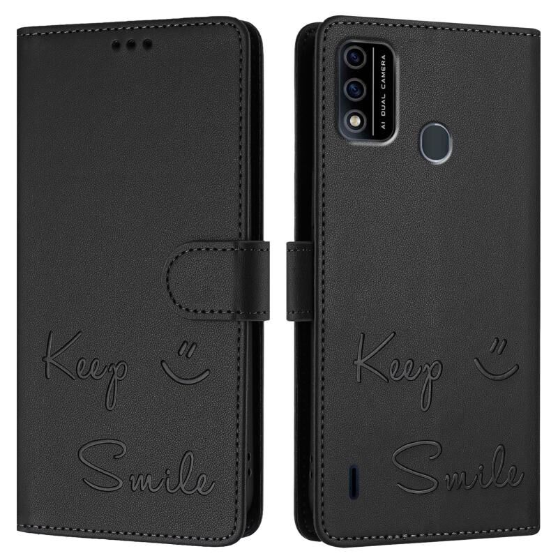 For itel A48 Smile Embossing RFID Leather Phone Case(Black)