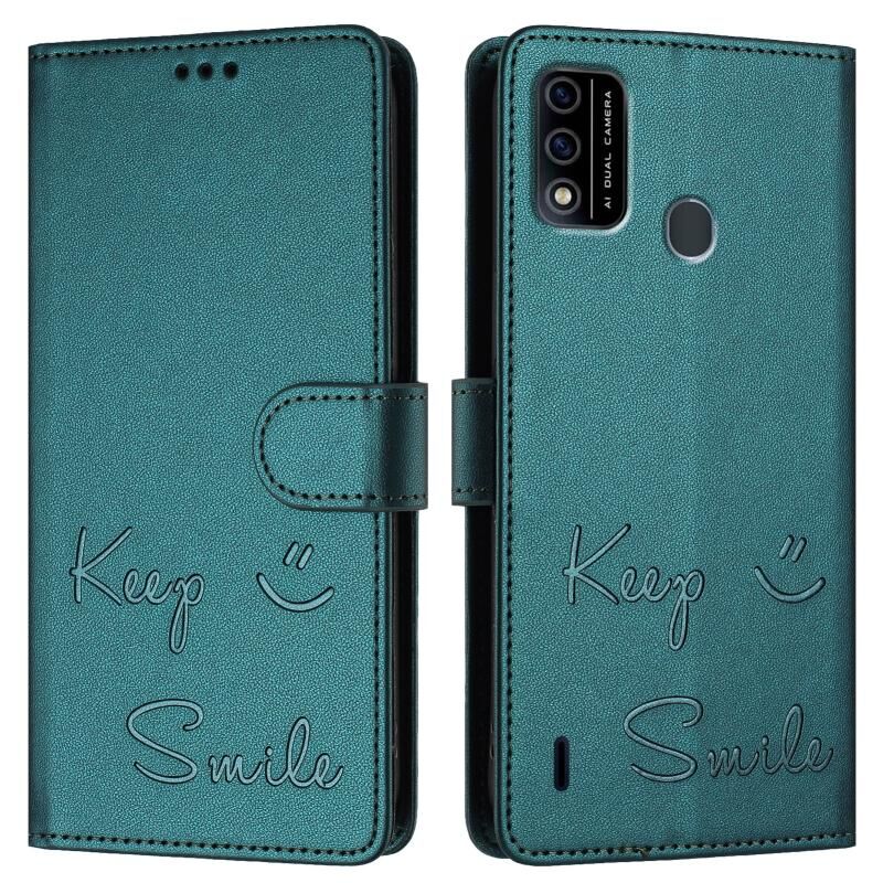 For itel A48 Smile Embossing RFID Leather Phone Case(Peacock Green)