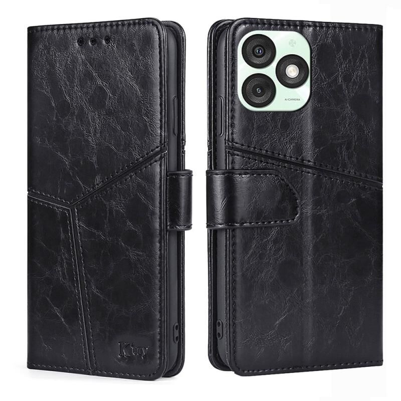 Για Itel A50 4G γεωμετρική ραφή δερμάτινη θήκη τηλεφώνου (μαύρο)