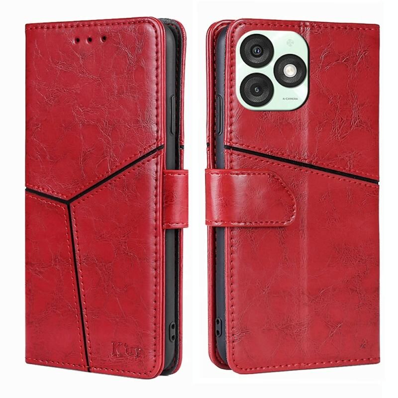 Για Itel A50 4G γεωμετρική ραφή δερμάτινη θήκη τηλεφώνου (κόκκινο)
