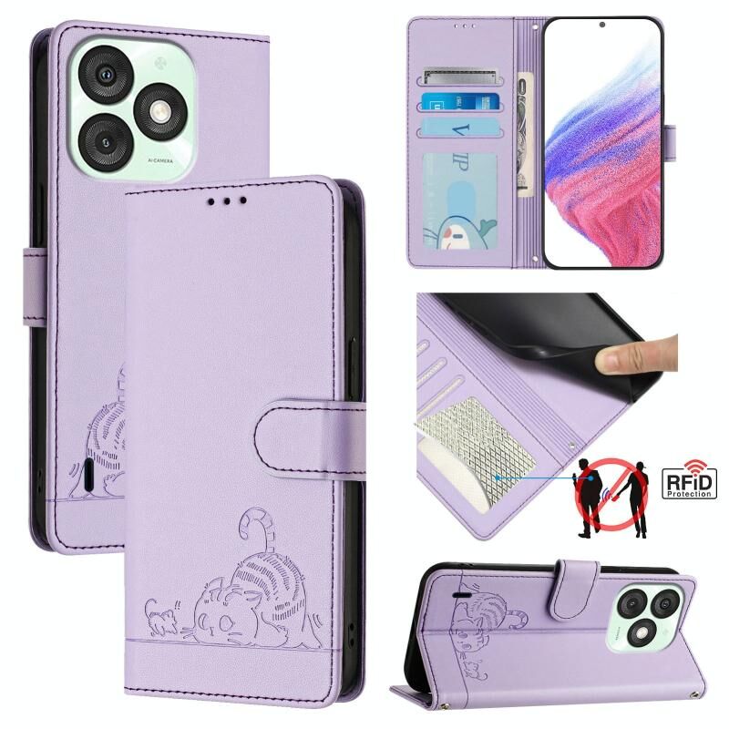 Θήκη τηλεφώνου από δέρμα με ανάγλυφο σχέδιο γάτας και ποντικού για itel A50 με RFID και κορδόνι (Μέντας Πράσινο)
