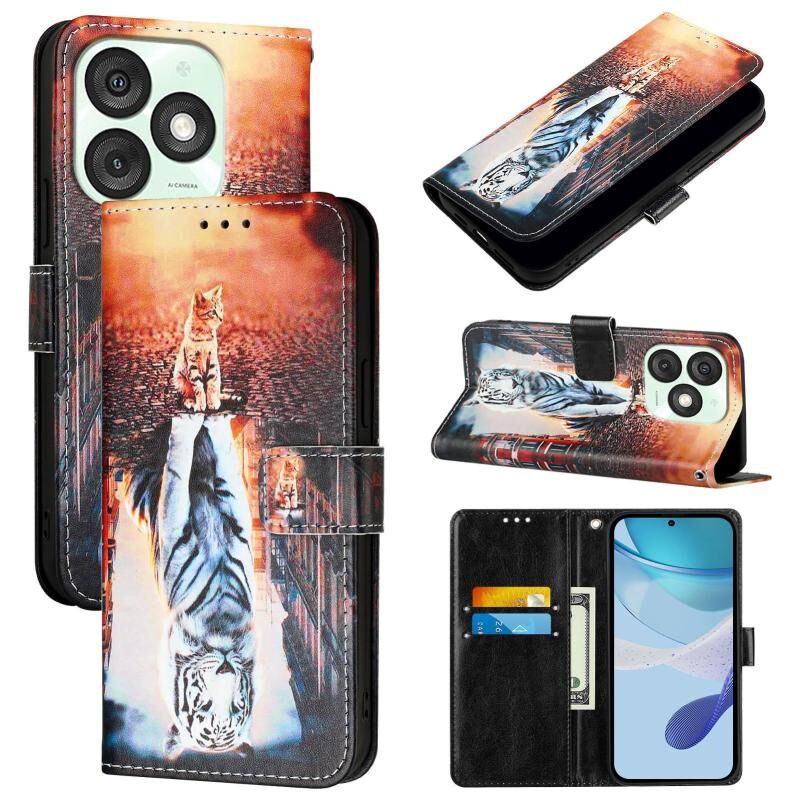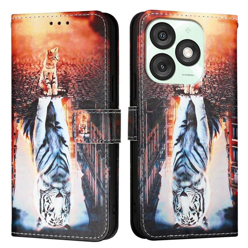 Θήκη τηλεφώνου από δέρμα με απλή ύφανση και πολύχρωμο σχέδιο για itel A50 (Γάτες και Τίγρεις)