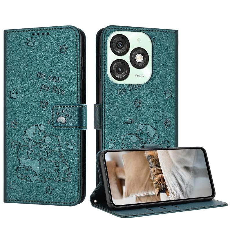 Θήκη δερμάτινη για itel A50 με ανάγλυφο γατάκι και κορδόνι (Μωβ)