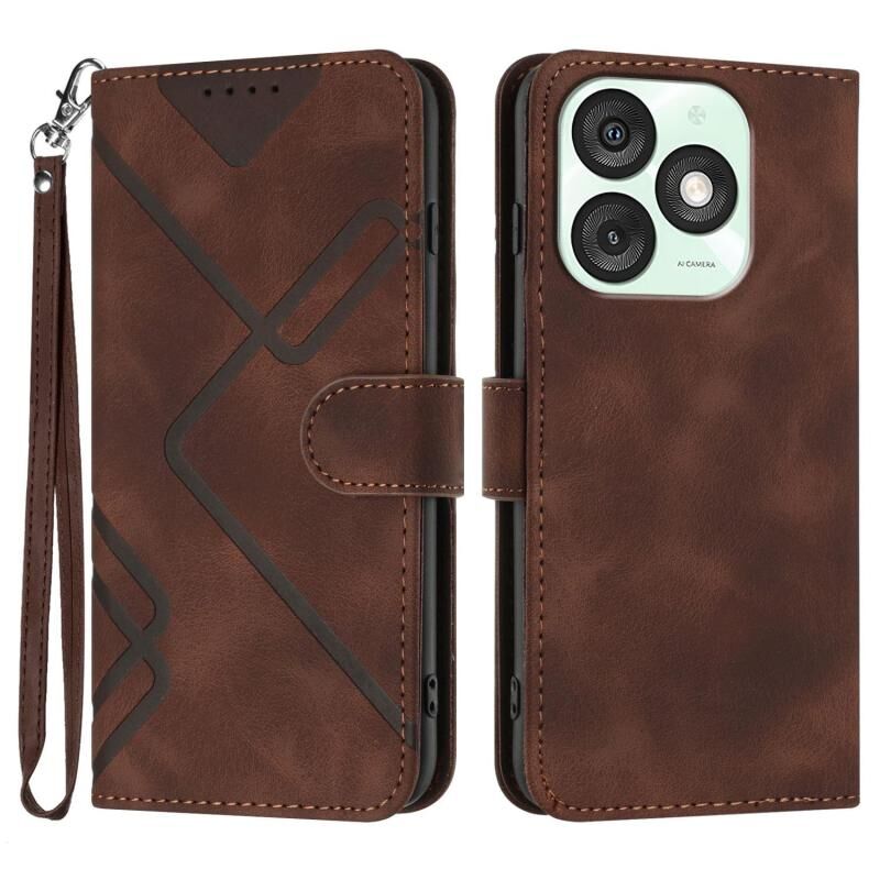 Για το Itel A50 Γραμμή μοτίβο δέρμα αίσθηση δέρμα τηλέφωνο υπόθεση (καφέ)