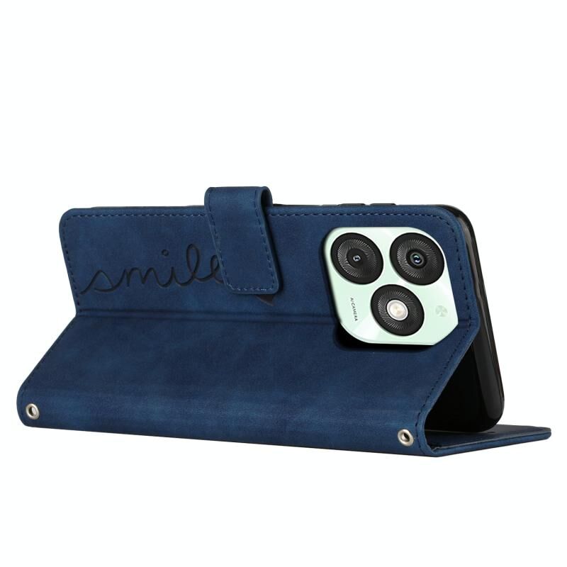 Για το itel A50 Skin Feel Heart ανάγλυφη δερμάτινη θήκη τηλεφώνου με μακρύ κορδόνι (μπλε)