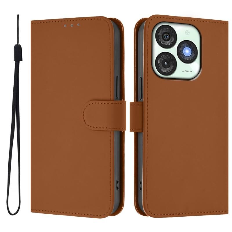 Για το itel A50 Skin Feel Αμιγές χρώμα δερμάτινη θήκη τηλεφώνου με κορδόνι (καφέ)