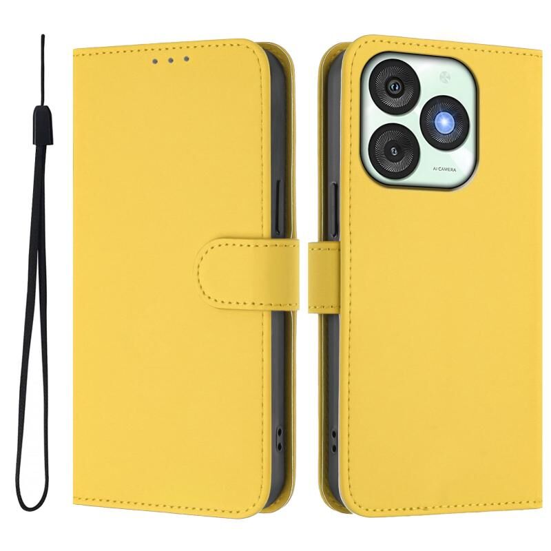 Για το itel A50 Skin Feel Αμιγές χρώμα δερμάτινη θήκη τηλεφώνου με κορδόνι (κίτρινο λεμόνι)