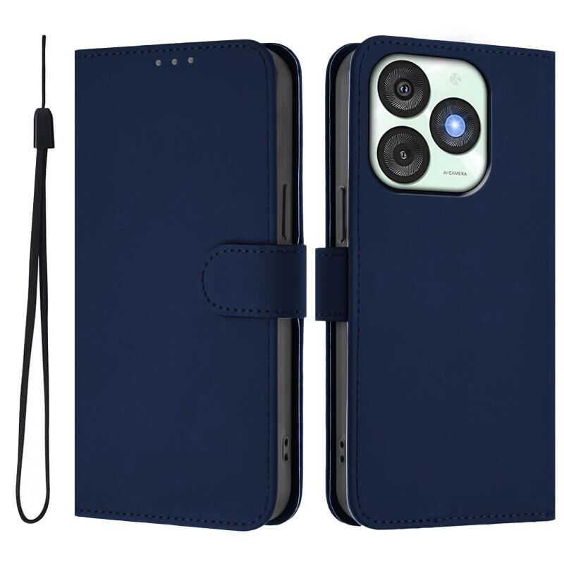 Για το itel A50 Skin Feel Αμιγές χρώμα δερμάτινη θήκη τηλεφώνου με κορδόνι (Ναυτικό μπλε)