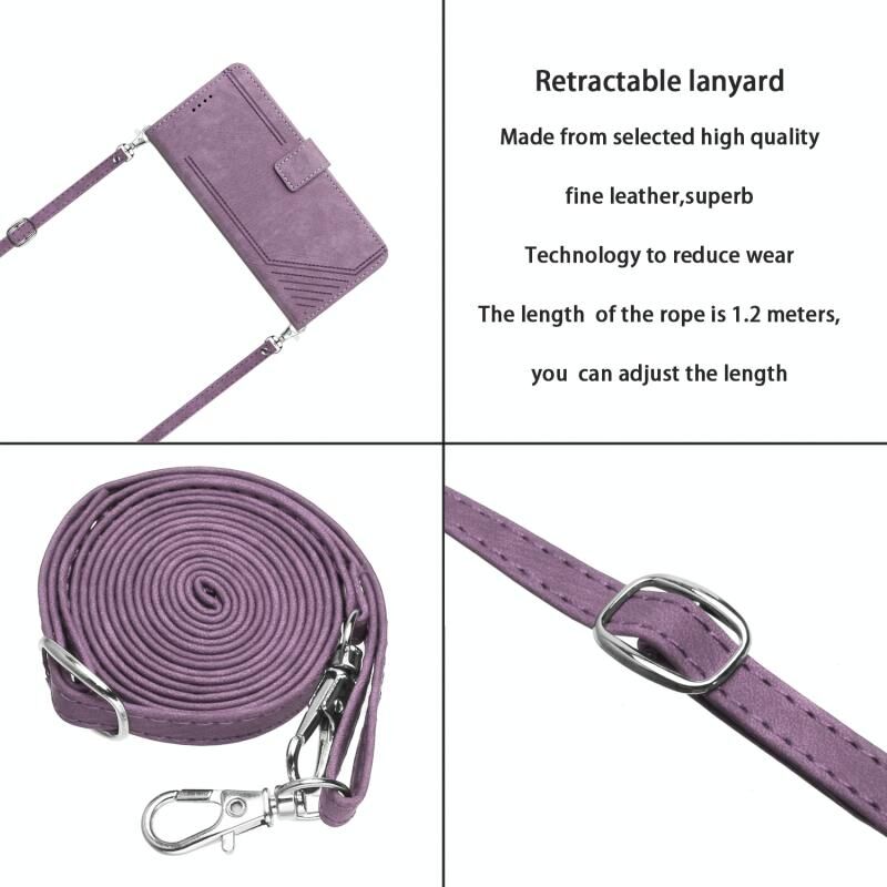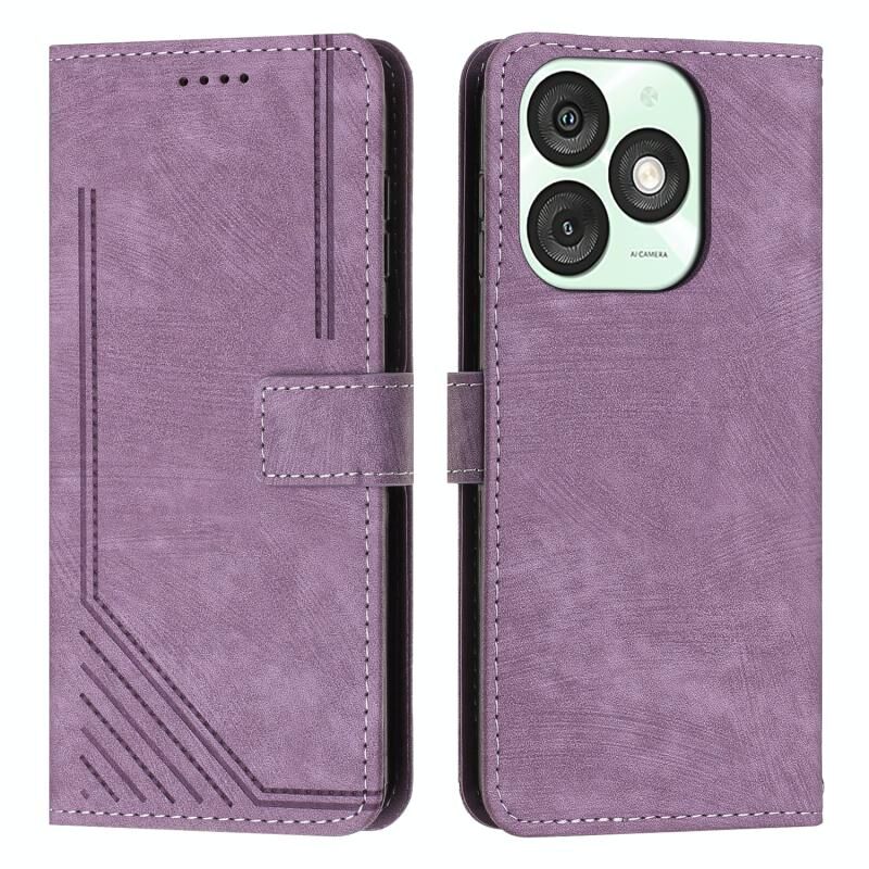 Για το itel A50 Skin Feel Stripe Pattern δερμάτινη θήκη τηλεφώνου με κορδόνι (μωβ)