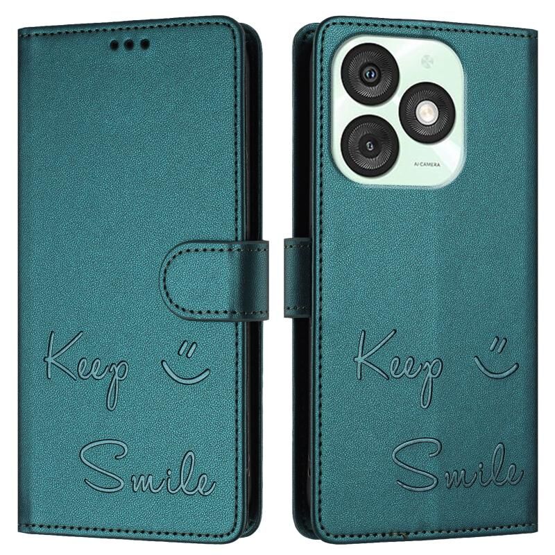 For itel A50 Smile Embossing RFID Leather Phone Case(Peacock Green)