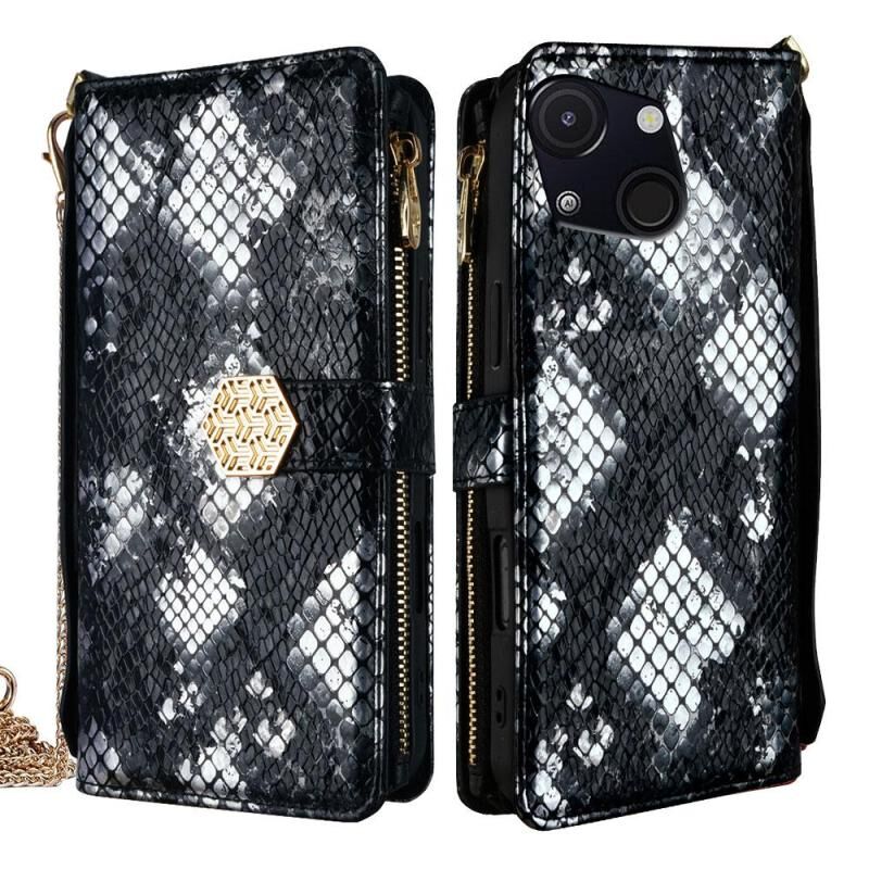 For itel A50C 4G Crossbody Handle Snake Texture Leather Phone Case(Black)