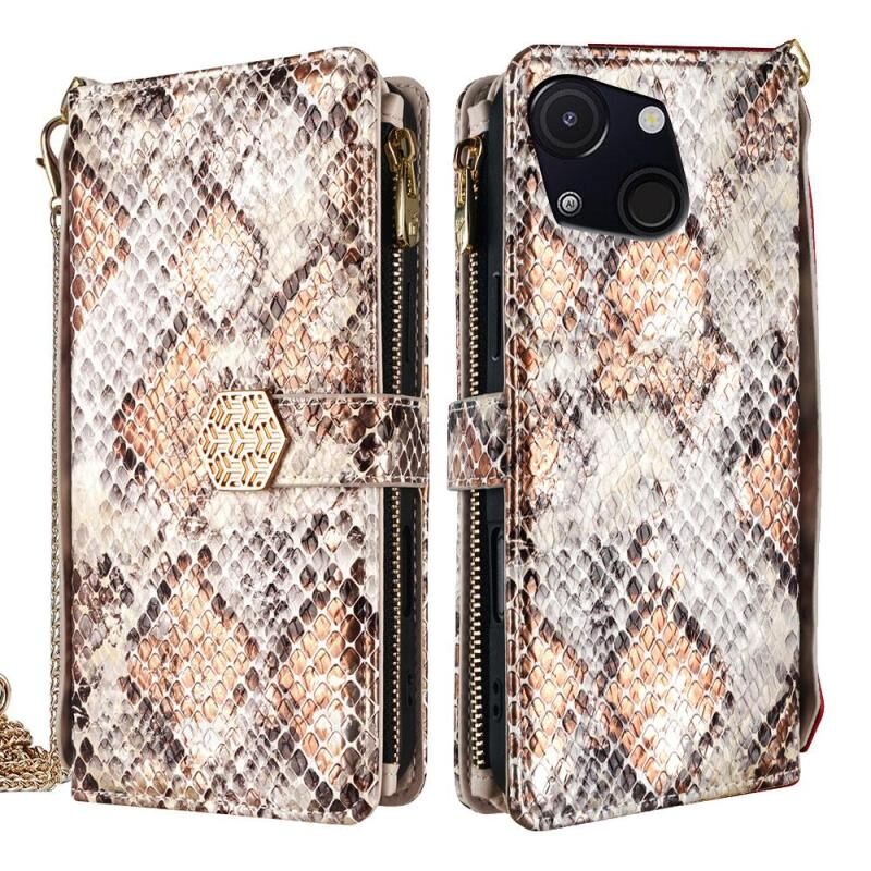 For itel A50C 4G Crossbody Handle Snake Texture Leather Phone Case(White)