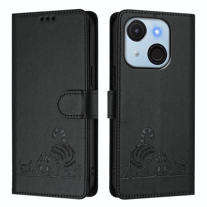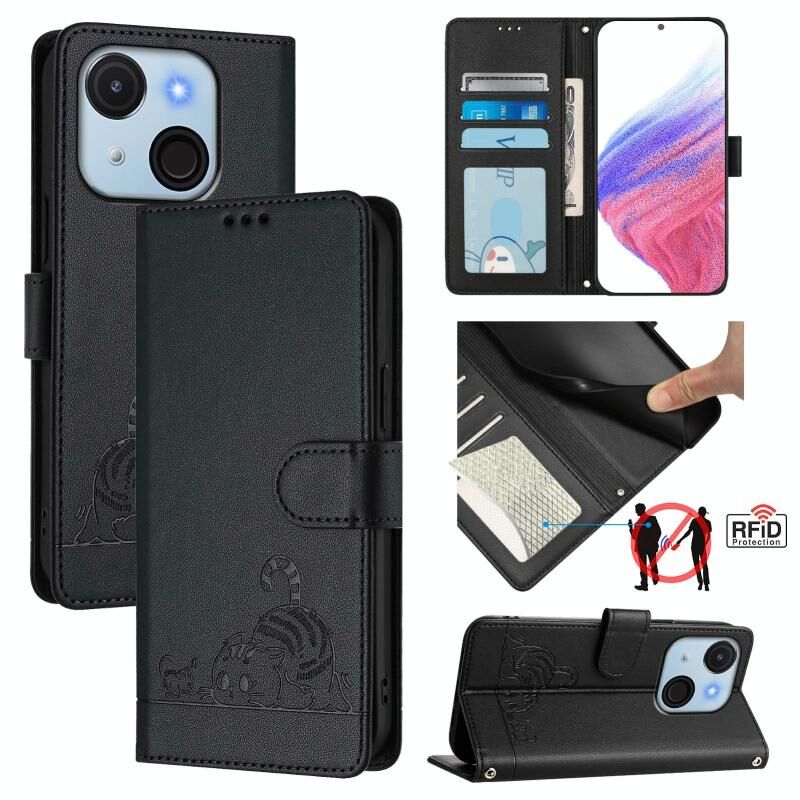 For itel A50C Cat Rat Embossed Pattern RFID Leather Phone Case with Lanyard(Black)