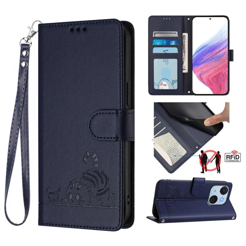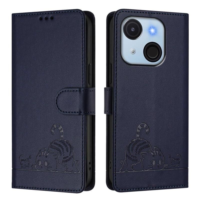 Θήκη τηλεφώνου από δέρμα με ανάγλυφο σχέδιο γάτας και ποντικιού για itel A50C με RFID και κορδόνι (Μέντας Πράσινο)