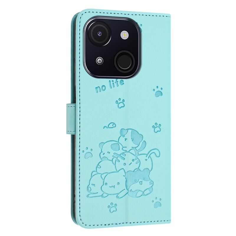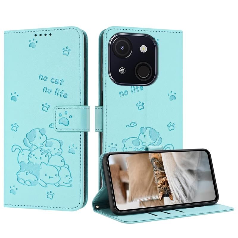 Θήκη δερμάτινη για itel A50C με ανάγλυφο γατάκι και κορδόνι (Μωβ)