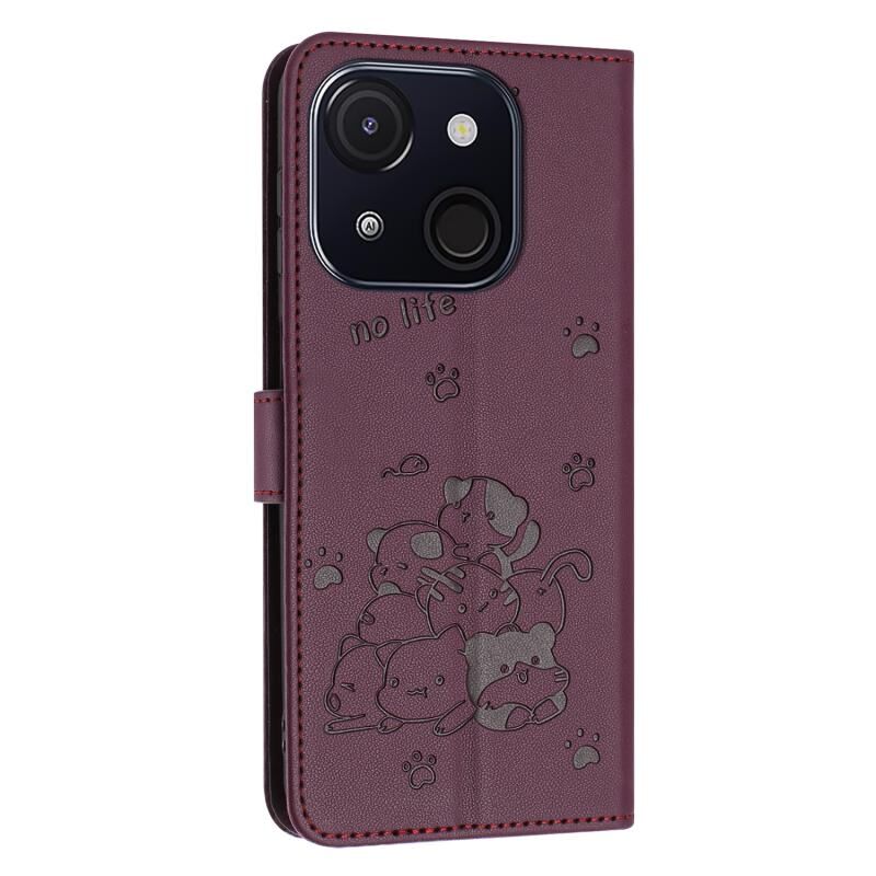 Θήκη δερμάτινη για itel A50C με ανάγλυφο γατάκι και κορδόνι (Μωβ)