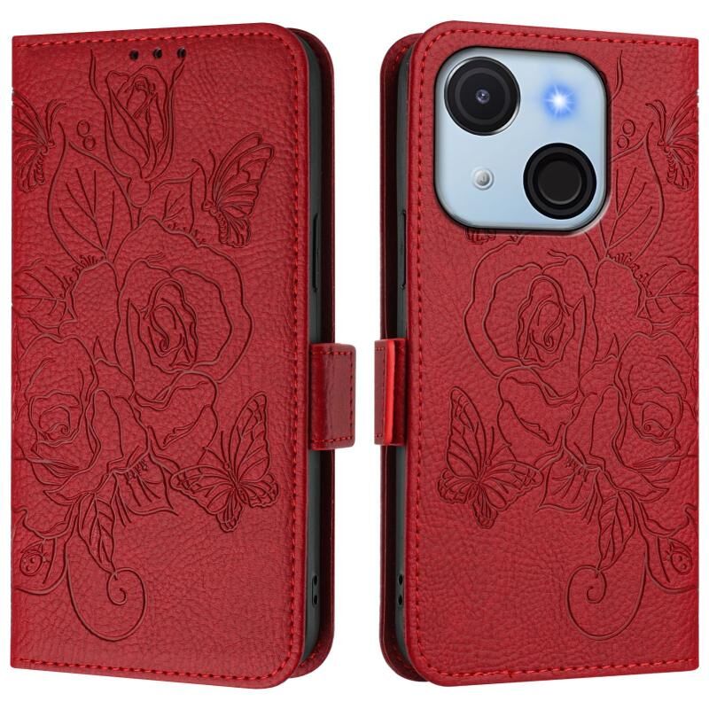 For itel A50C Embossed Rose RFID Anti-theft Leather Phone Case(Red)