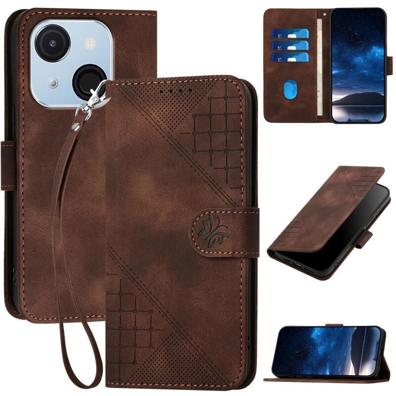 Θήκη τηλεφώνου από δέρμα με ανάγλυφο σχέδιο πλέγματος και πεταλούδας για Itel A50C με κορδόνι (Καφέ)