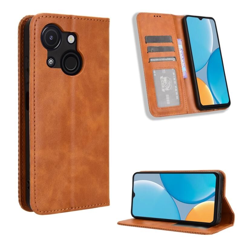 Για το itel A50C Μαγνητική πόρπη ρετρό υφή δερμάτινη θήκη τηλεφώνου (καφέ)