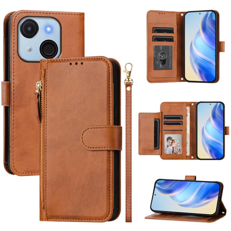 For Itel A50C Multi-Card Slots Zipper Wallet Leather Phone Case(Brown)