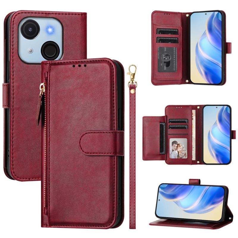 For Itel A50C Multi-Card Slots Zipper Wallet Leather Phone Case(Dark Red)