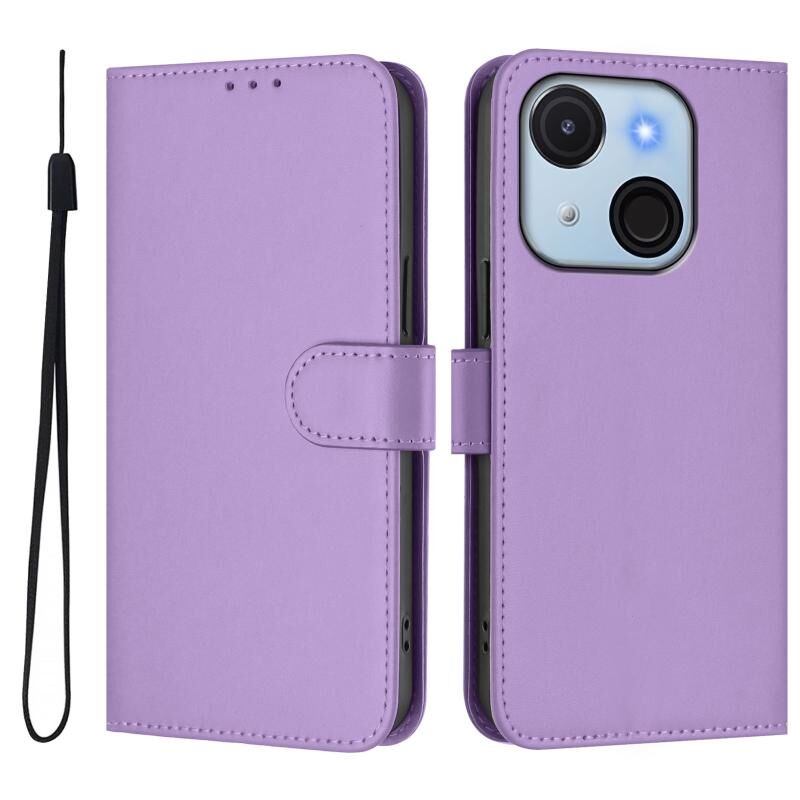 Για το itel A50C Skin Feel Αμιγές χρώμα δερμάτινη θήκη τηλεφώνου με κορδόνι (μωβ λεβάντα)