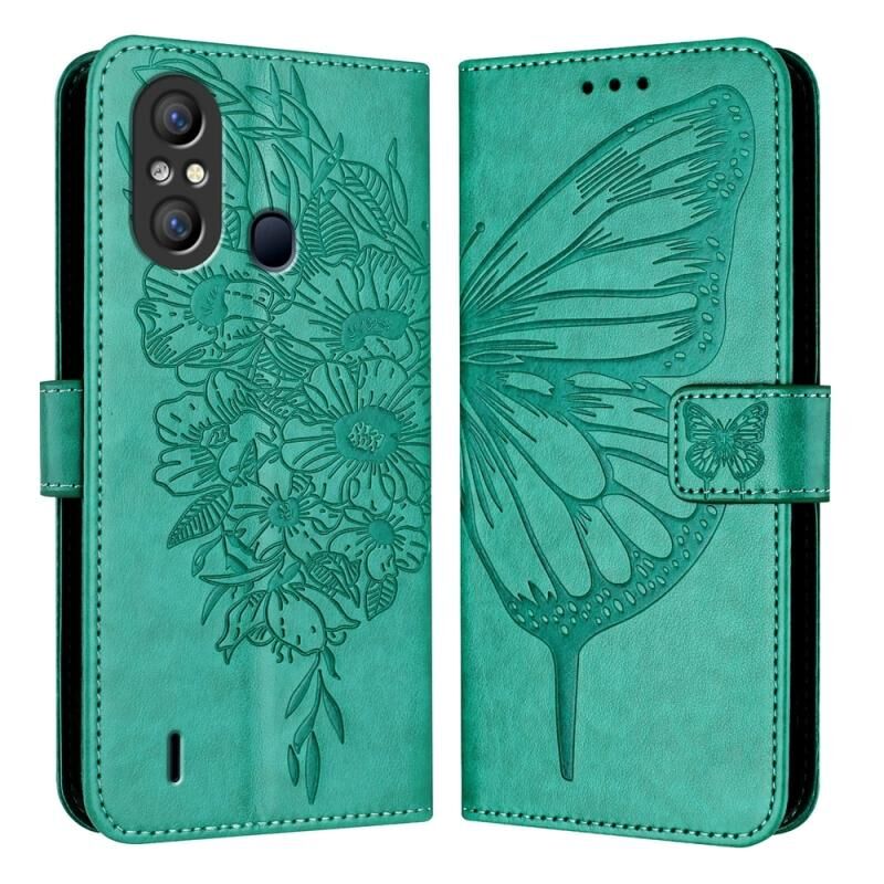 Θήκη τηλεφώνου από δέρμα με ανάγλυφο σχέδιο πεταλούδας για Itel A58 / A49 (πράσινο)