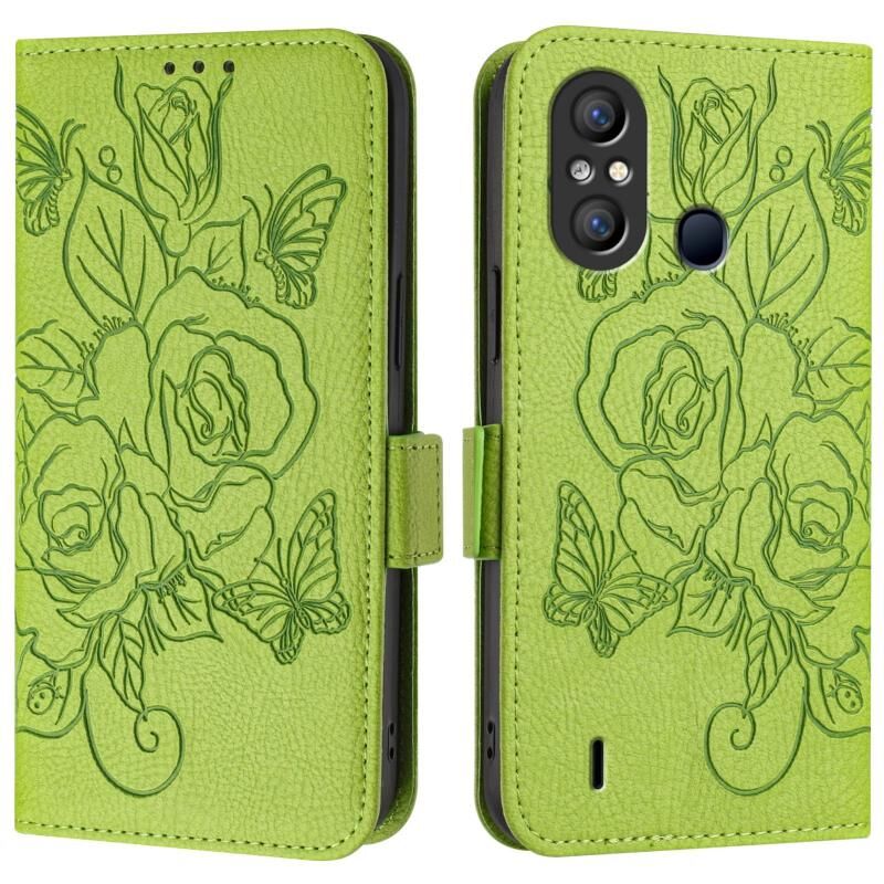For itel A58 / A49 Embossed Rose RFID Anti-theft Leather Phone Case(Green)