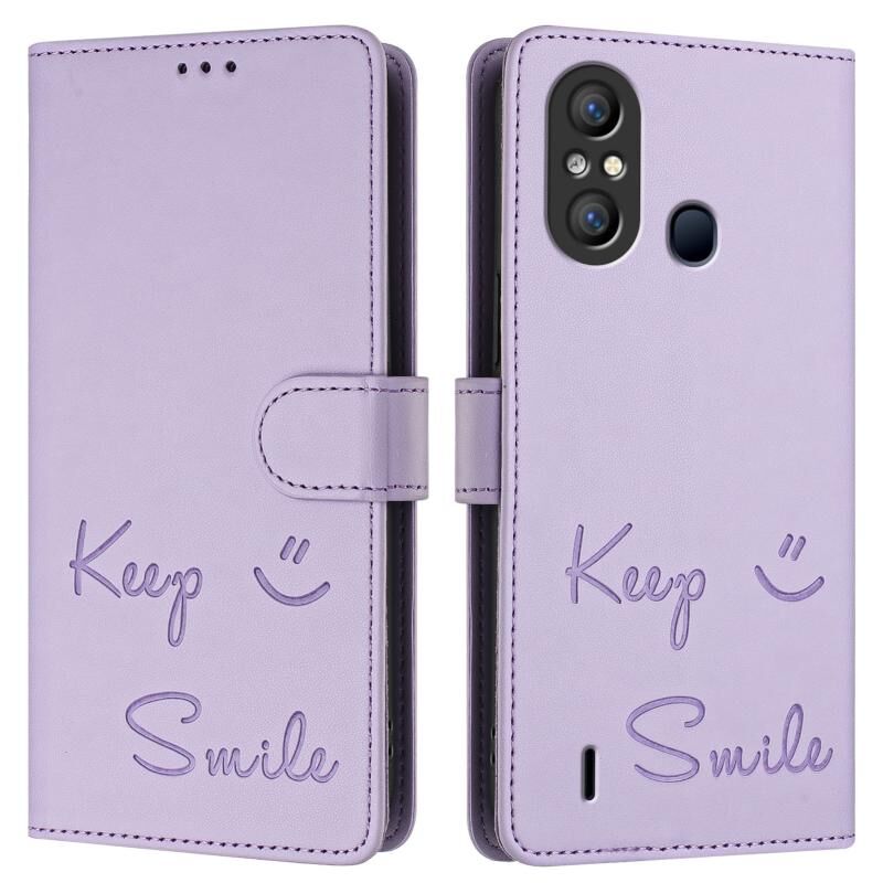 For itel A58 / A49 Smile Embossing RFID Leather Phone Case(Light Purple)