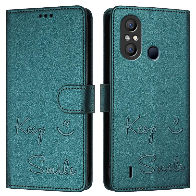 For itel A58 / A49 Smile Embossing RFID Leather Phone Case(Peacock Green)