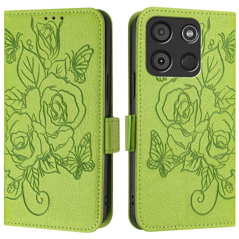 For itel A60 / A60s Embossed Rose RFID Anti-theft Leather Phone Case(Green)