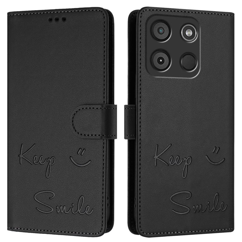 For itel A60 / A60s Smile Embossing RFID Leather Phone Case(Black)
