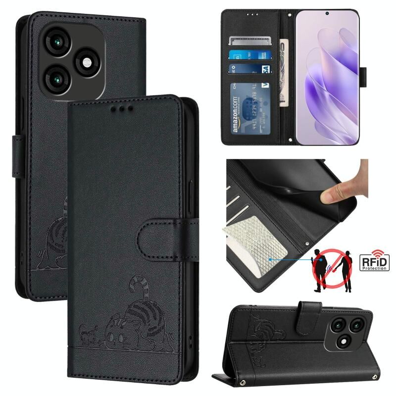 Θήκη τηλεφώνου από δέρμα με ανάγλυφο σχέδιο γάτας και ποντικιού για itel A70 με RFID και λουρί (Μέντας Πράσινο)