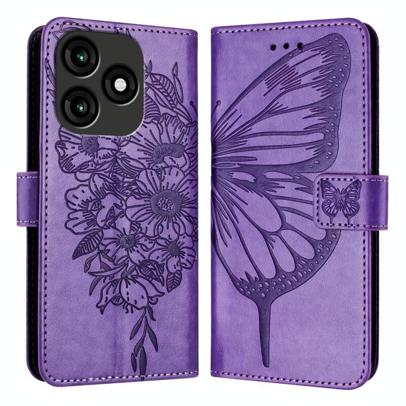 Θήκη τηλεφώνου δερμάτινη με ανάγλυφο σχέδιο πεταλούδας για Itel A70 (Μαύρο)