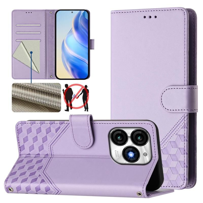 Για itel A70 Honeycomb ανάγλυφο RFID δερμάτινη θήκη τηλεφώνου (Light Purple)