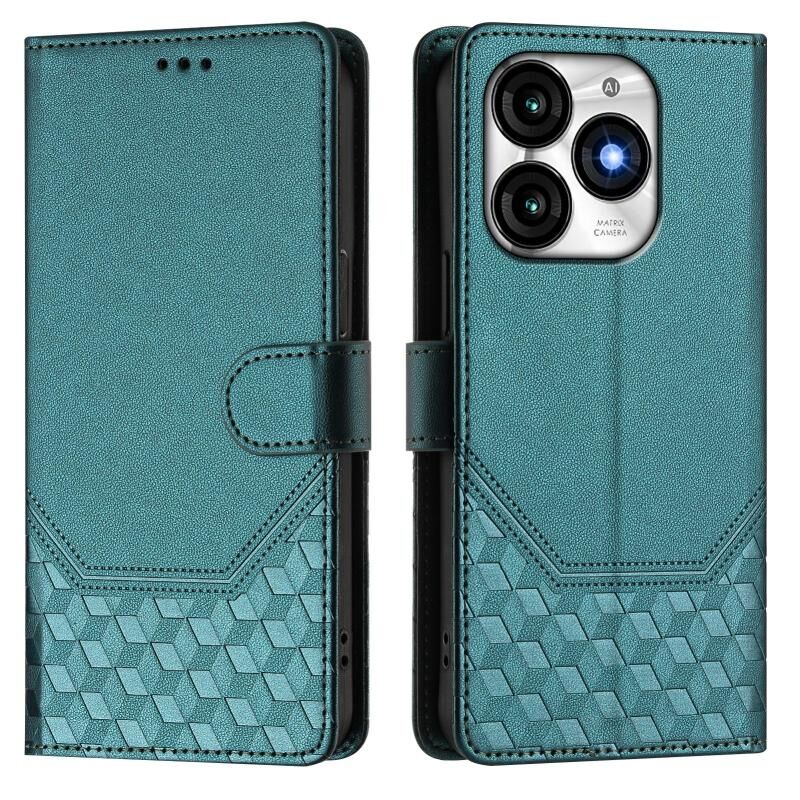 Για το itel A70 Honeycomb ανάγλυφο RFID δερμάτινη θήκη τηλεφώνου (Πράσινο παγώνι)