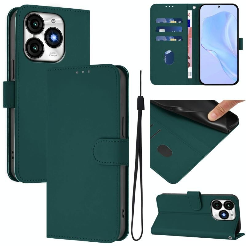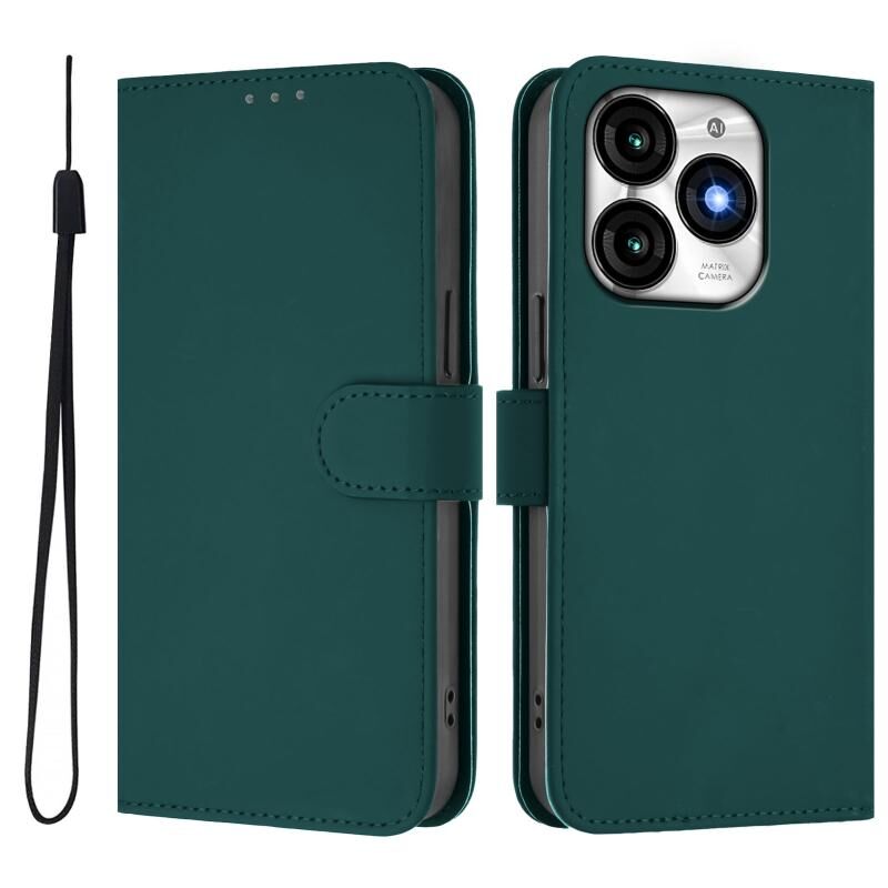 Για το itel A70 Skin Feel Αμιγές χρώμα δερμάτινη θήκη τηλεφώνου με κορδόνι (σκούρο πράσινο)