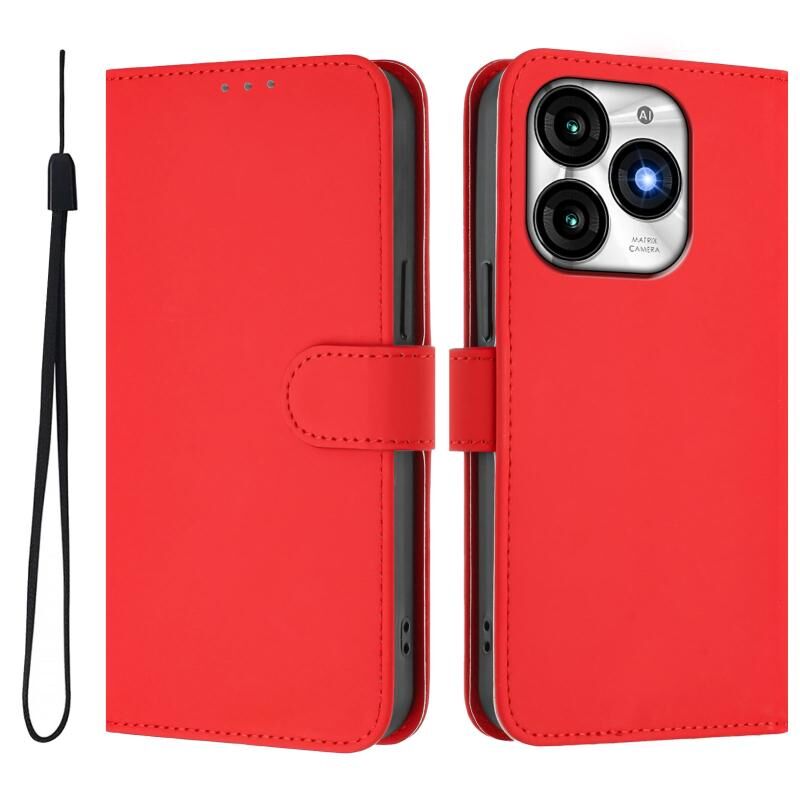 Για το itel A70 Skin Feel Αμιγές χρώμα δερμάτινη θήκη τηλεφώνου με κορδόνι (κόκκινο)