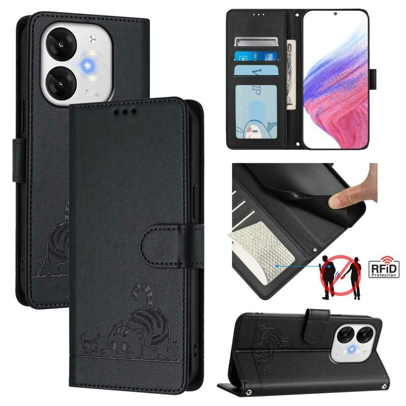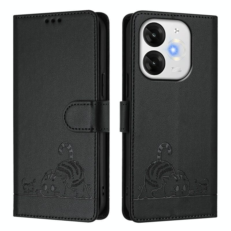 Θήκη τηλεφώνου από δέρμα με ανάγλυφο σχέδιο γάτας και ποντικιού, με κορδόνι για itel A80 4G Cat Rat (Μέντας Πράσινο)